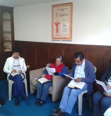 El Movimiento "El Carpintero está Vivo" nace en el año 2004, conformado por profesores de la PUCE y miembros de algunas comunidades de la Pastoral de la Universidad Católica. Nos reunimos semanalmente para orar, formarnos en la fe y compartir la vida.